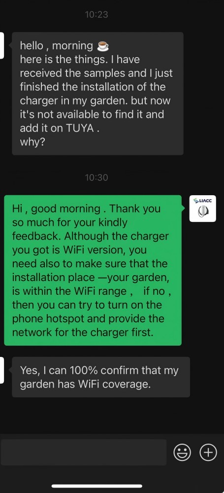 ผู้ใช้ได้ติดตั้งเวอร์ชัน wifiเครื่องชาร์จ AC EVในสภาพแวดล้อมที่มีความครอบคลุม WiFi แต่อุปกรณ์ไม่สามารถพบได้เมื่อเพิ่มผลิตภัณฑ์ด้วย Tuya เหตุผลคืออะไร?